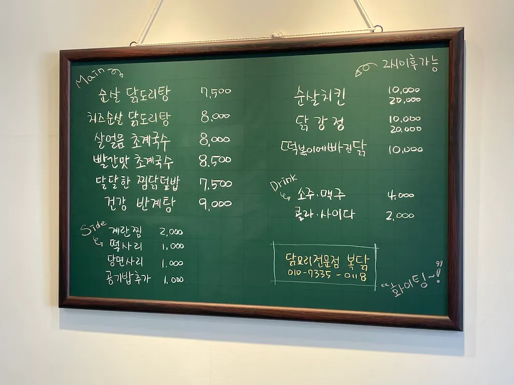 성수역 1번 출구에서 5~7분 거리에 위치하고 있습니다. 당일 만든 닭요리 재료로 당일 음식을 만들고 있습니다
