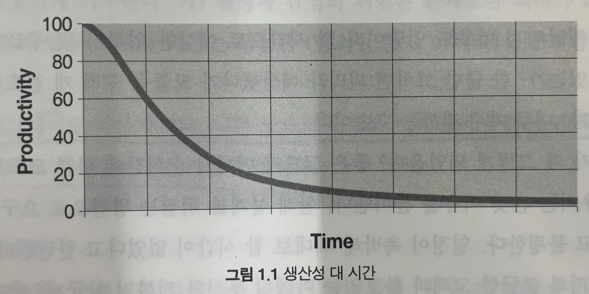 나쁜 코드가 쌓일수록 팀 생산성은 떨어진다. 그러다가 마침내 0에 근접한다.