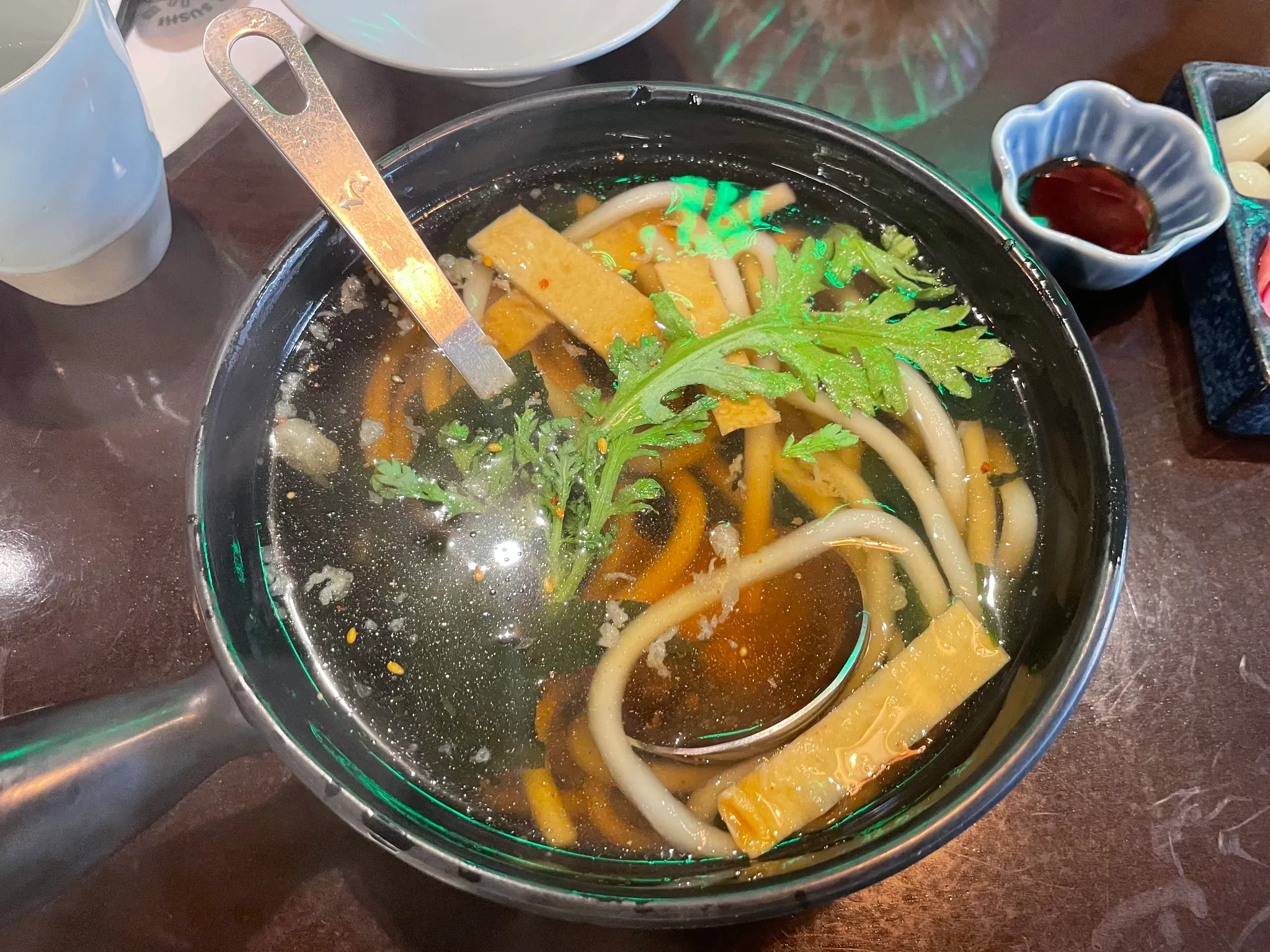 서비스로 나오는 냄비 우동입니다. 국물도 맛있고 면도 맛있습니다. 더 달라고 하면 더 주신다고 하십니다