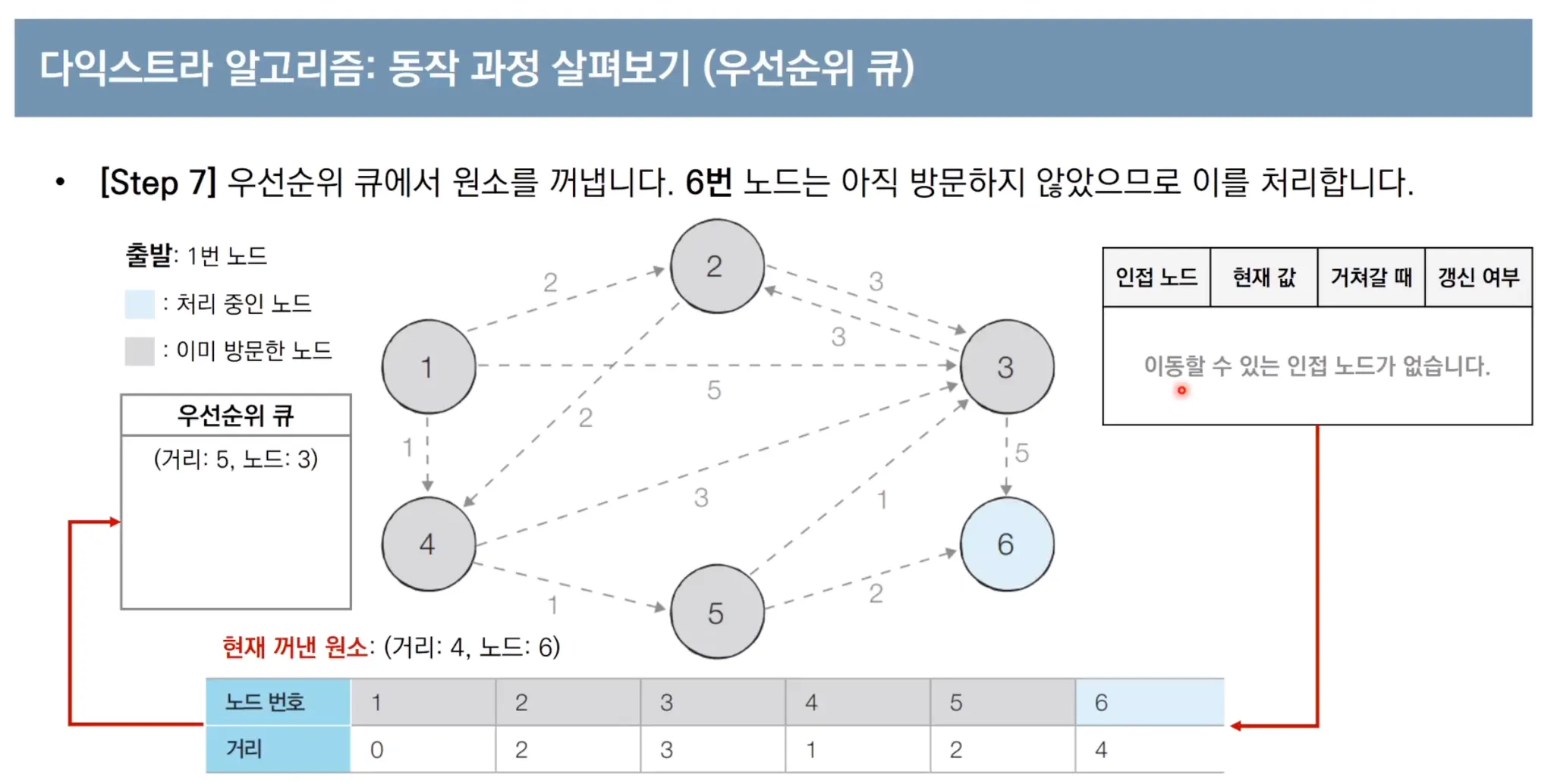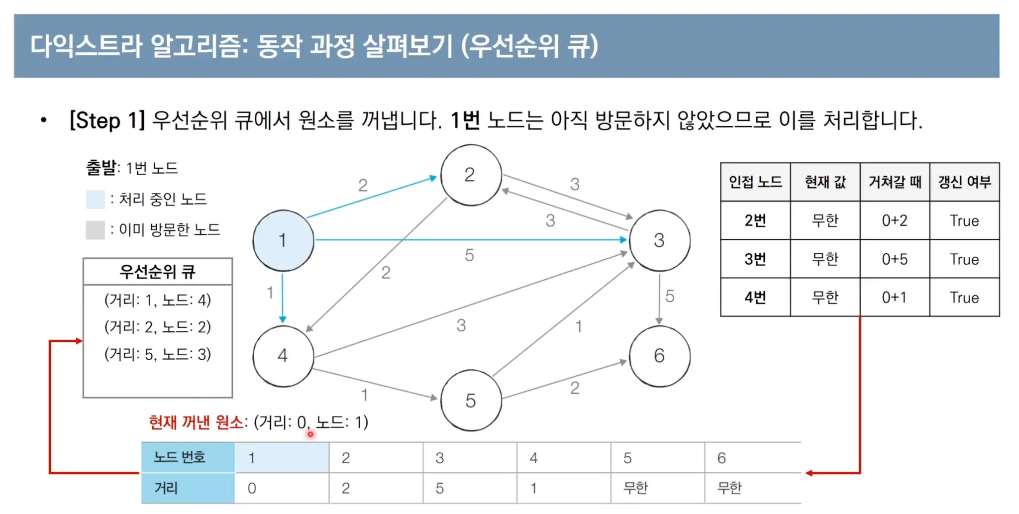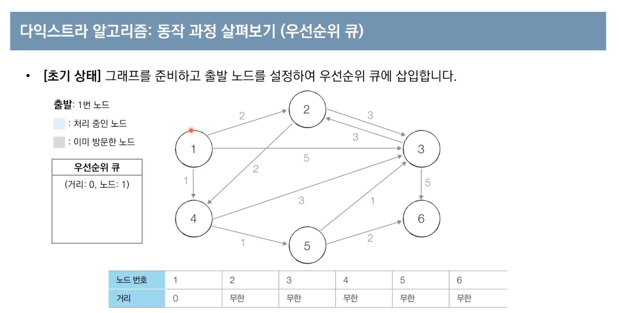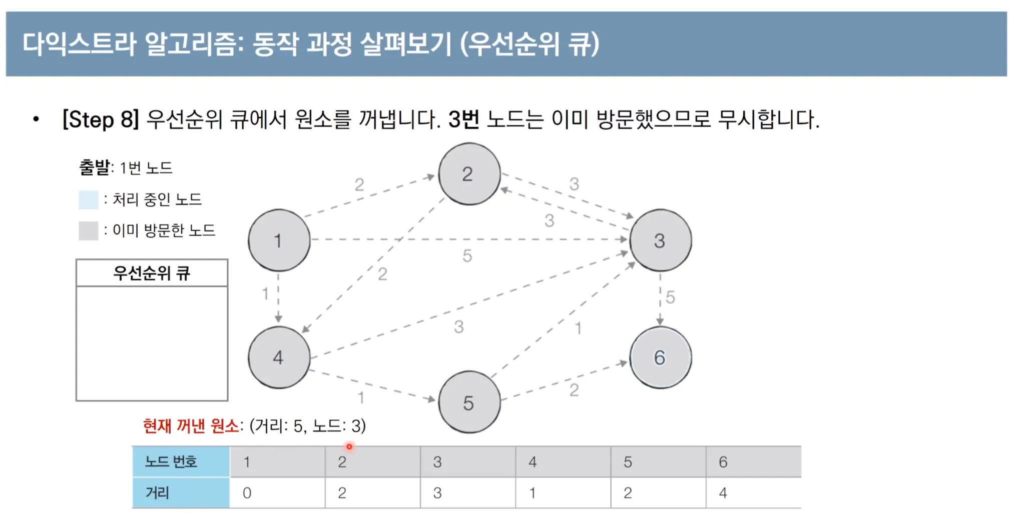 우선순위 큐를 이용한 다익스트라 알고리즘 동작 과정