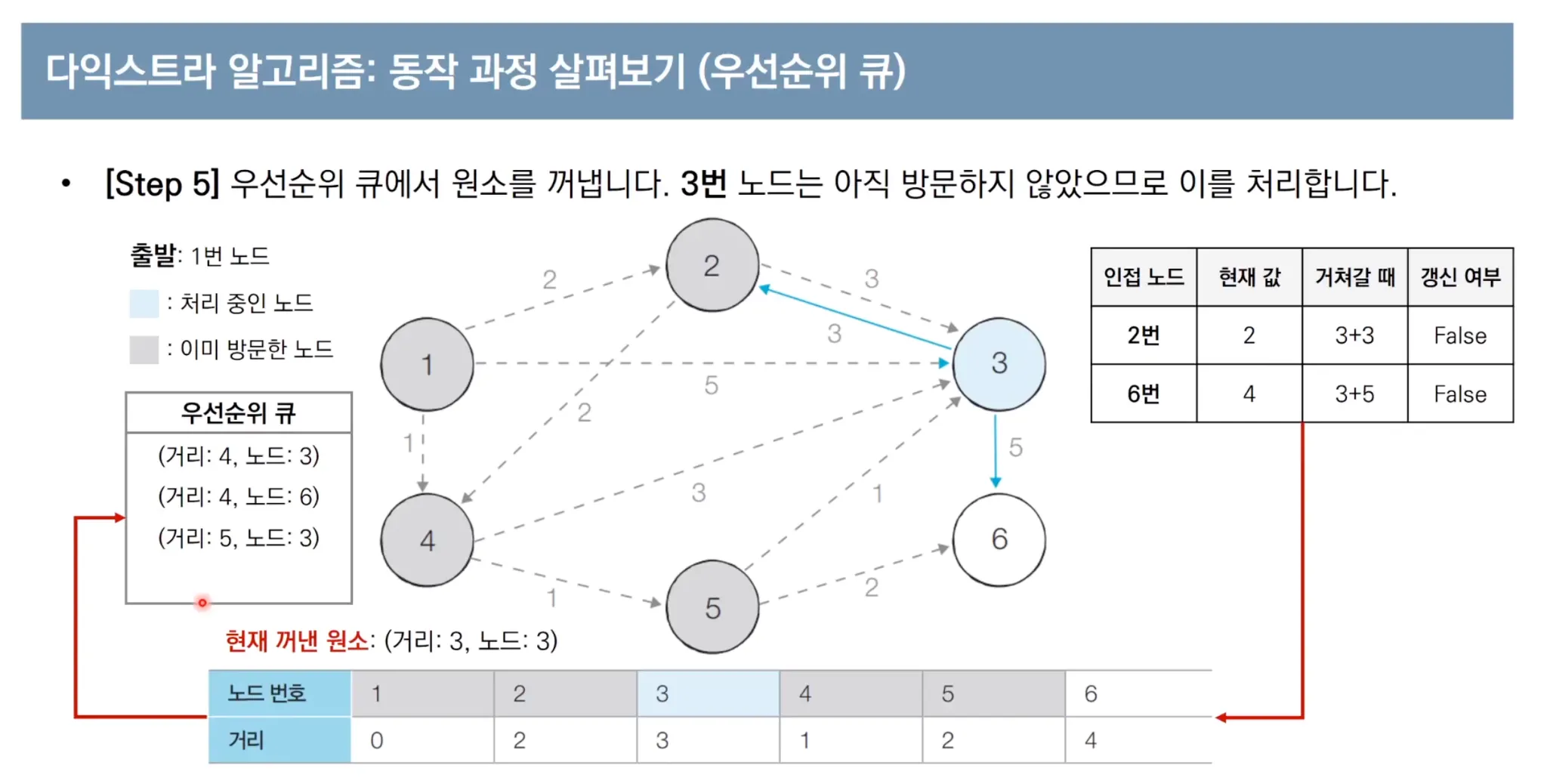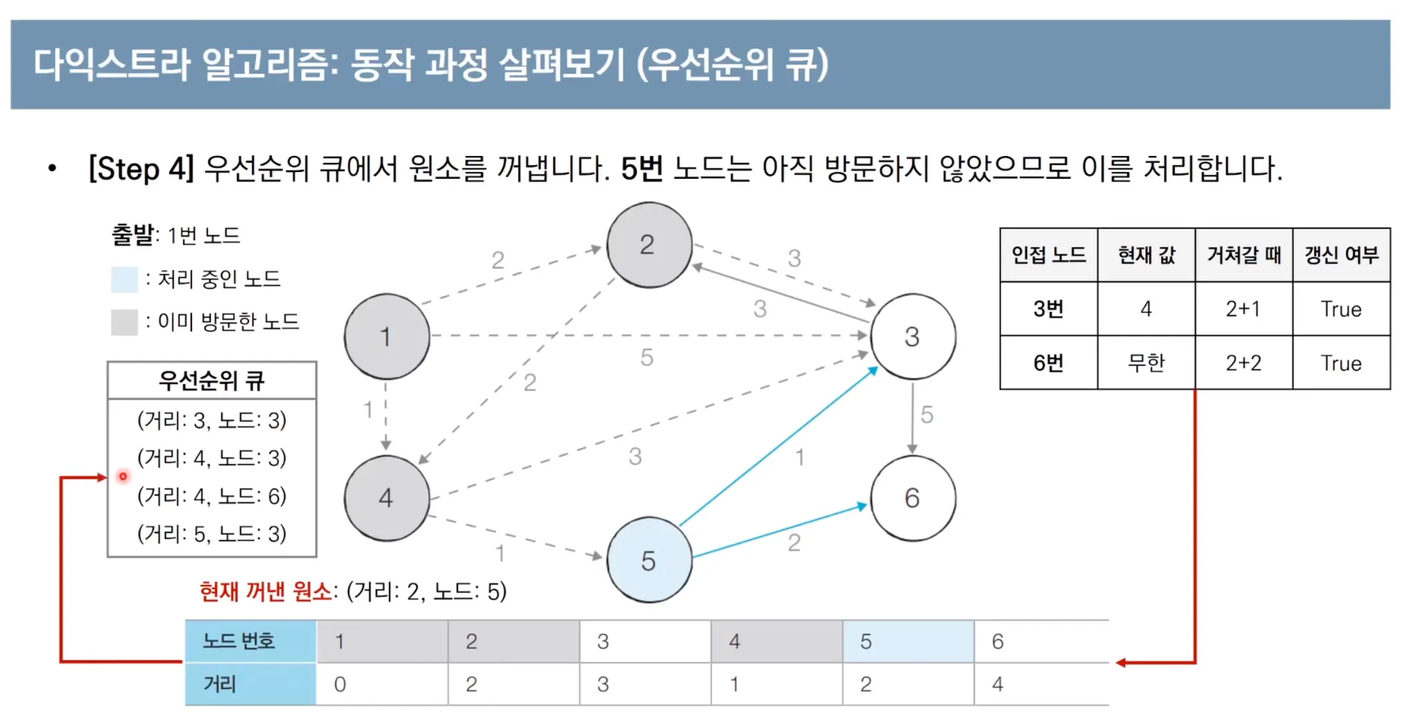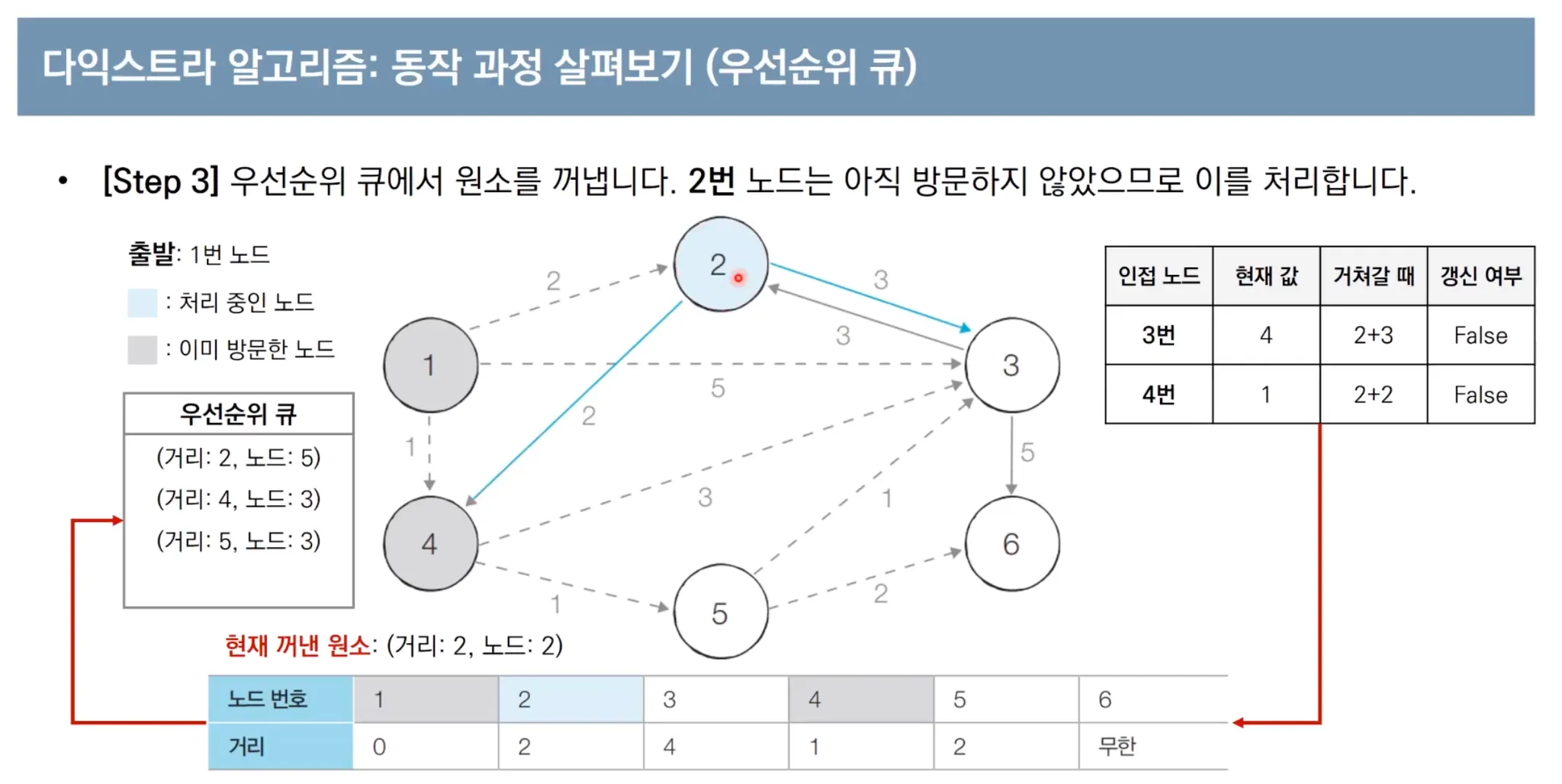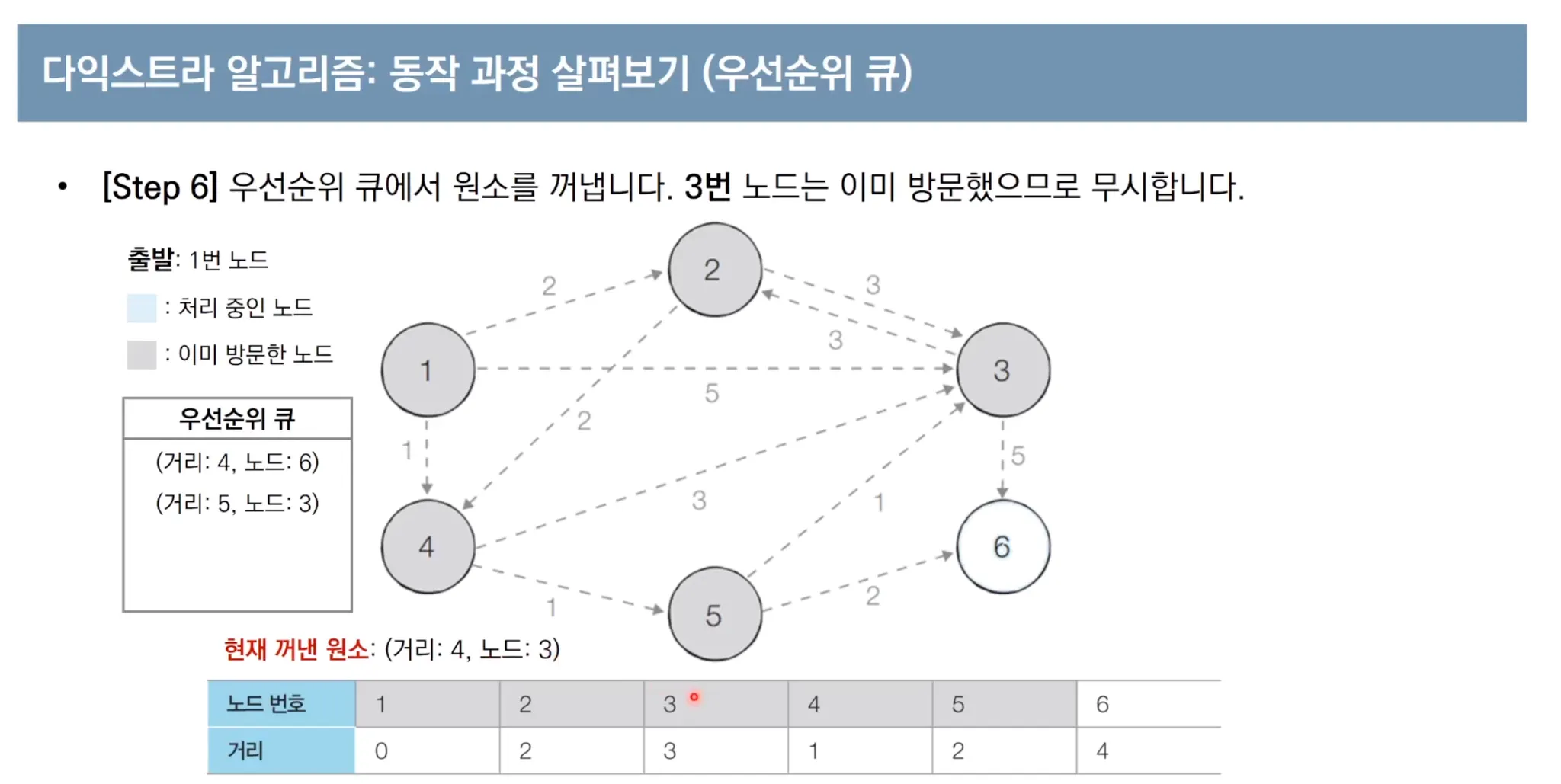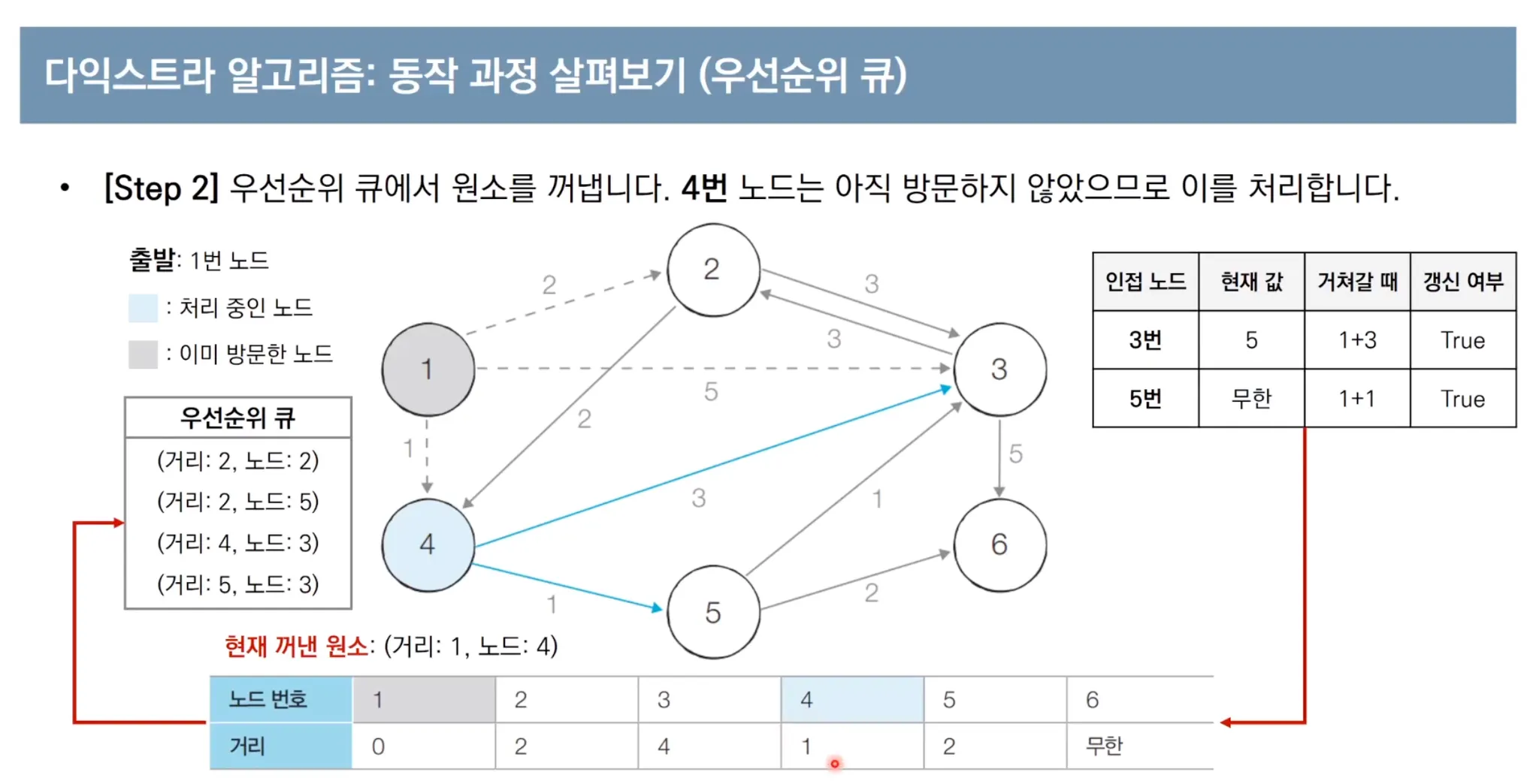 우선순위 큐를 이용한 다익스트라 알고리즘 동작 과정
