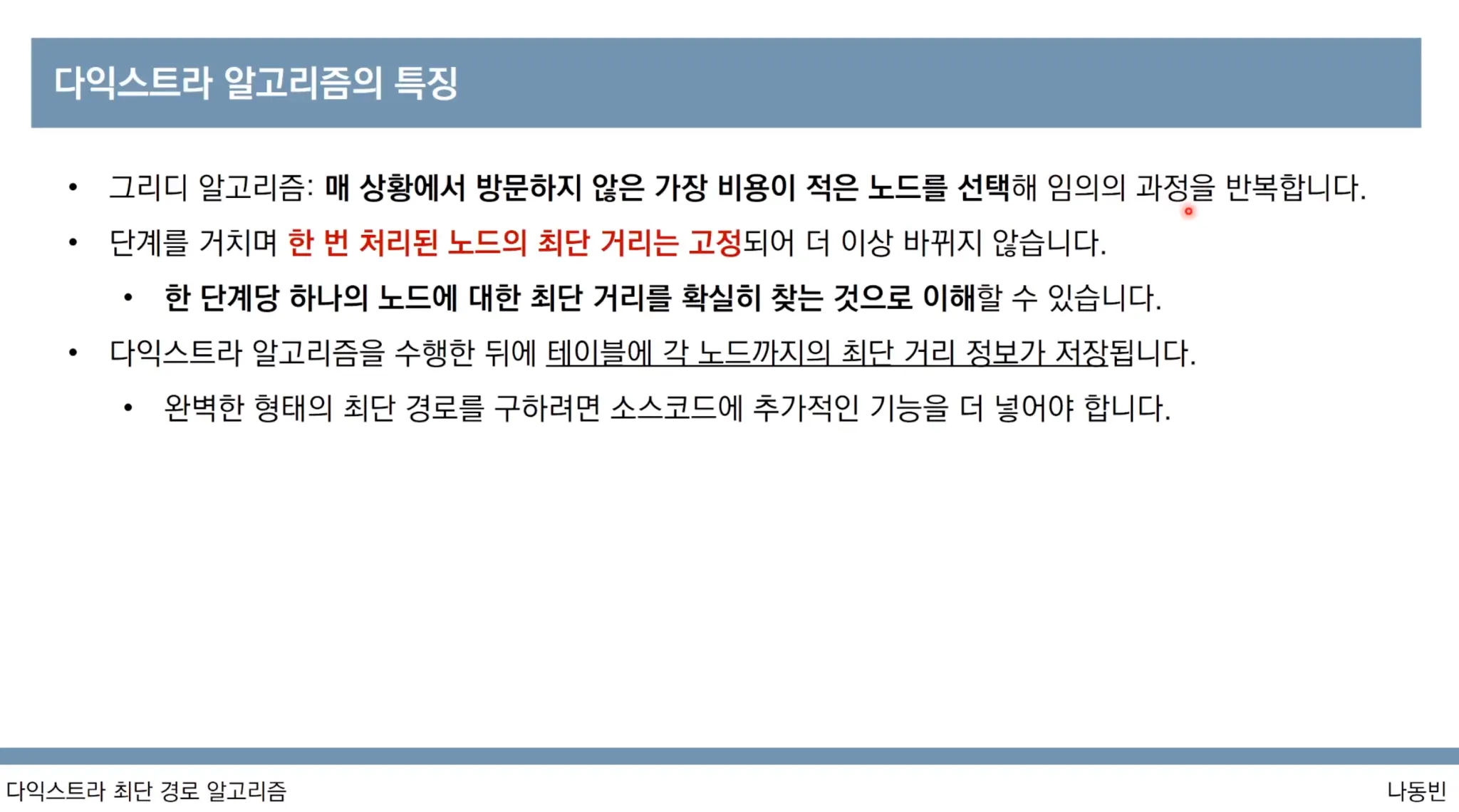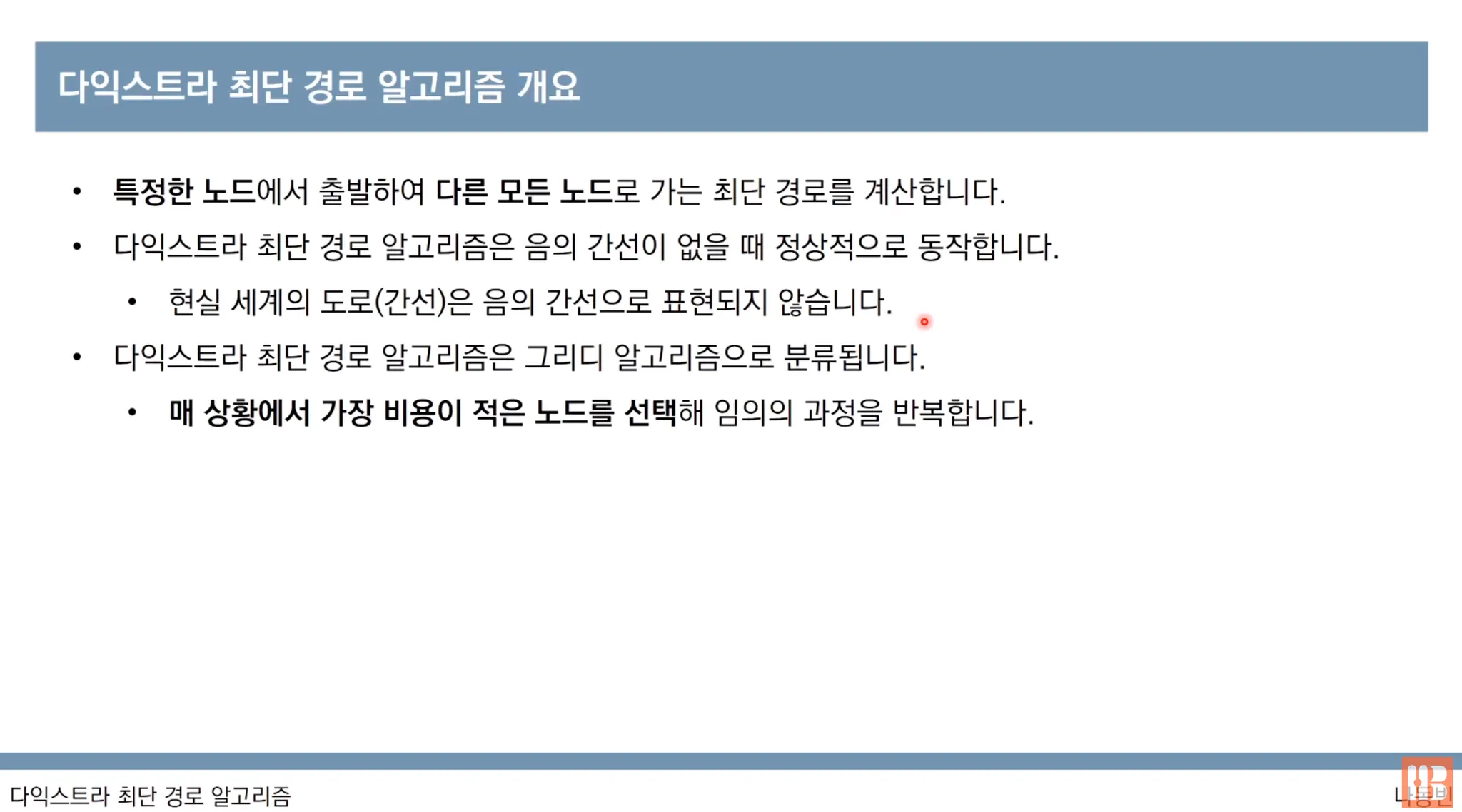 다익스트라 알고리즘 특징