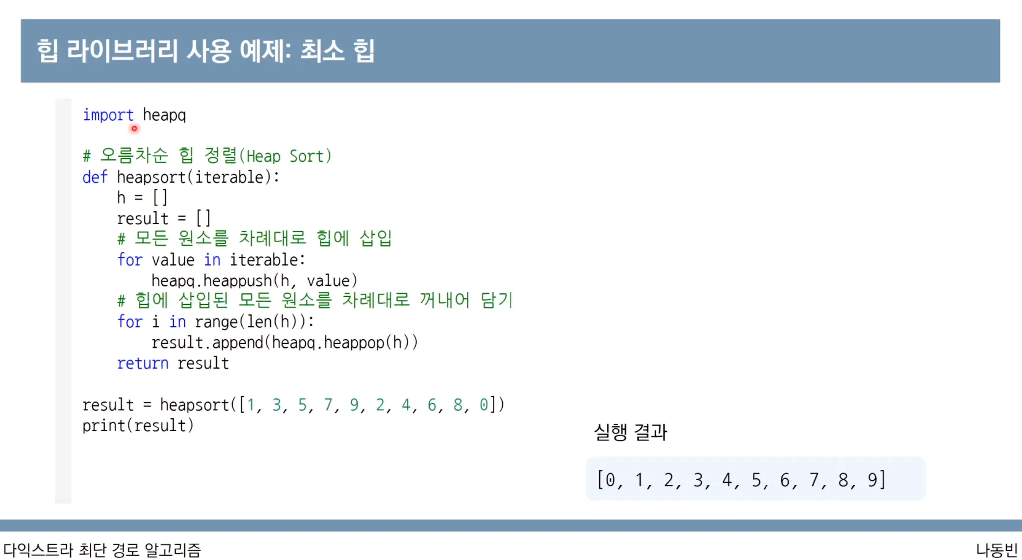 우선순위 큐를 사용한 다익스트라 파이썬 코드