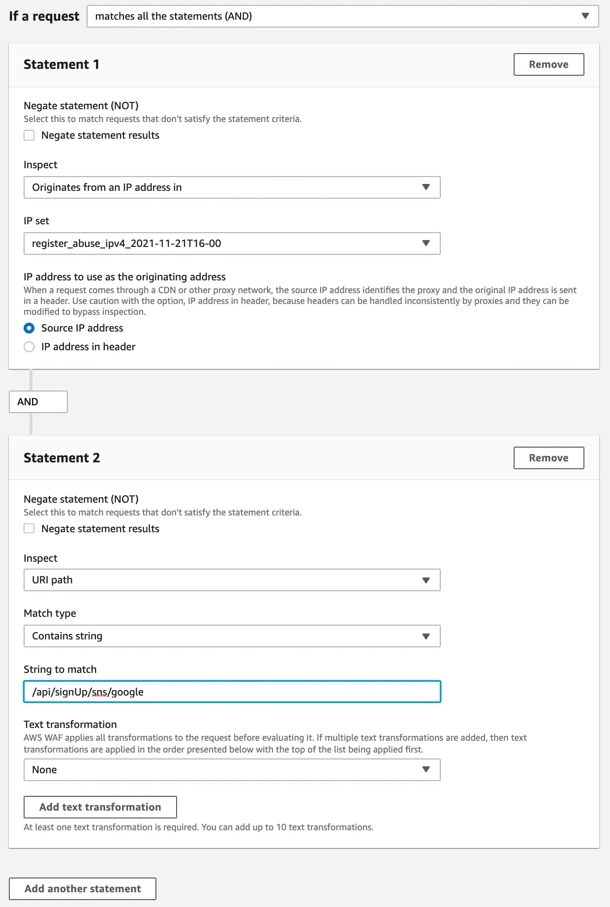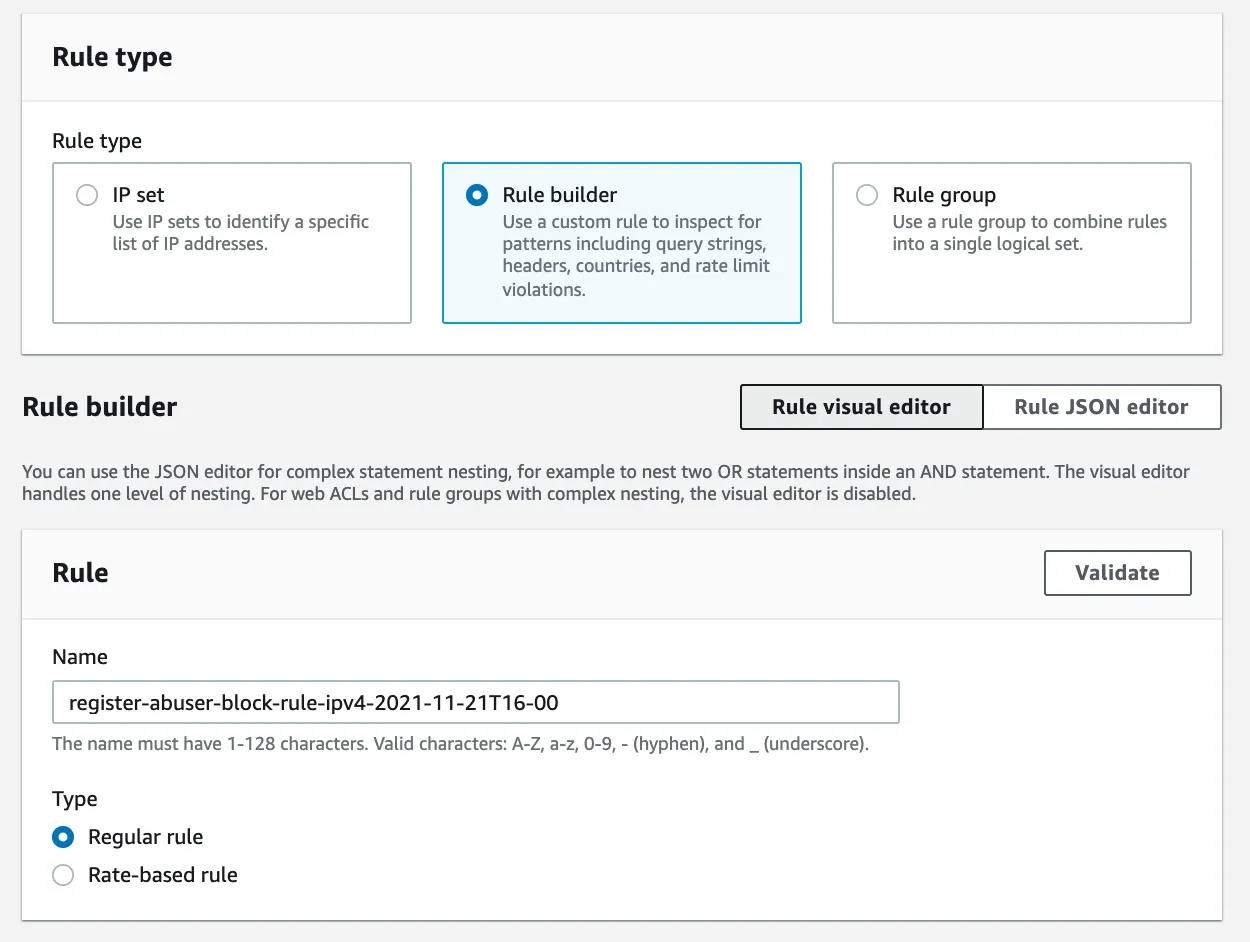 social login으로 계정을 반복적으로 많이 생성하는 악성 유저를 차단하기 위해서 AWS WAF를 도입하였습니다. 지난 글에서는 AWS WAF를 이용해서 소셜 회원가입 URL 호출을 많이 하는 IP를 특정하는 내용을 기록으로 남겼습니다. 이번에는 IP를 차단하는 내용을 기록으로 남깁니다.