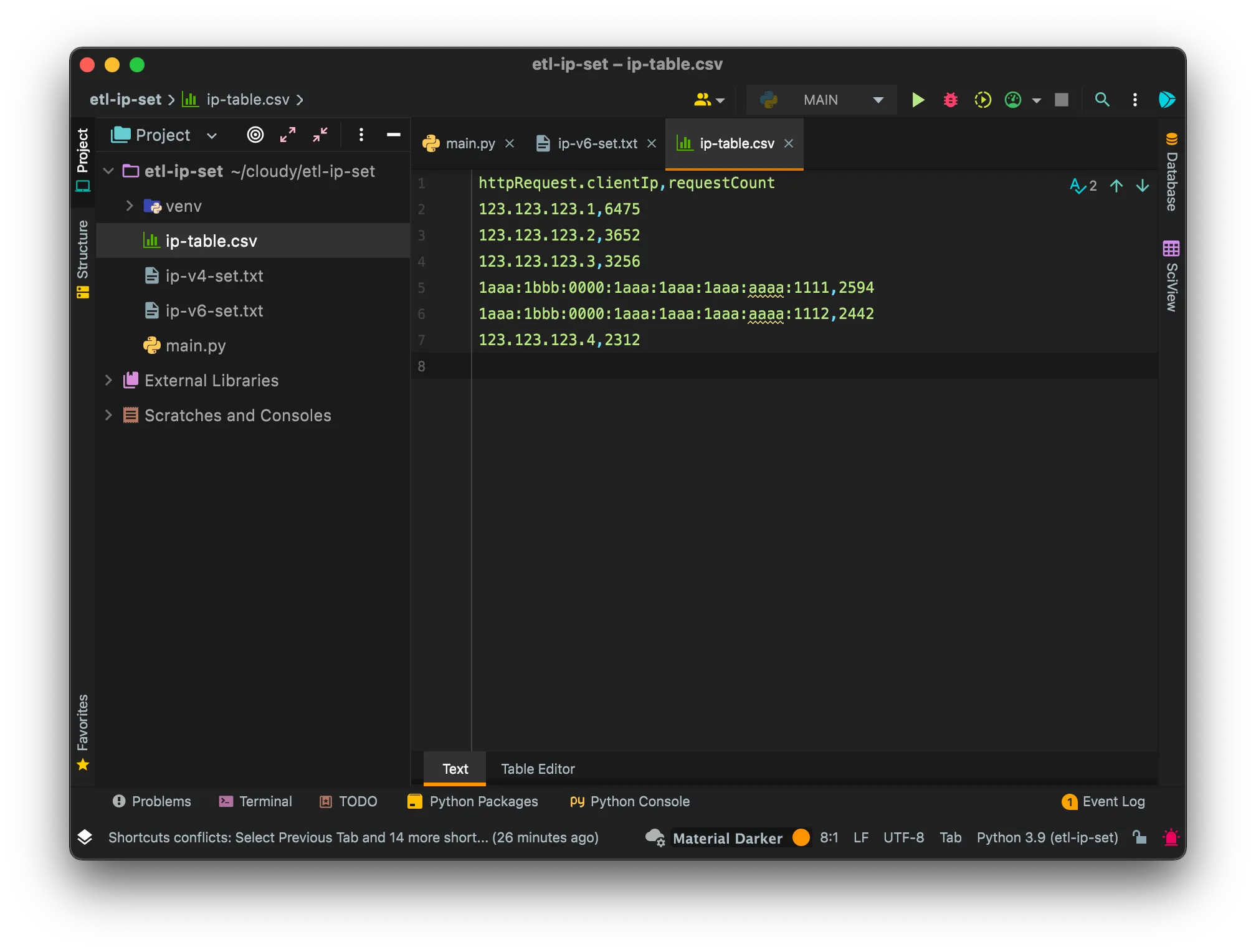 복사한 내용을 ip-table.csv 파일에 붙여넣습니다