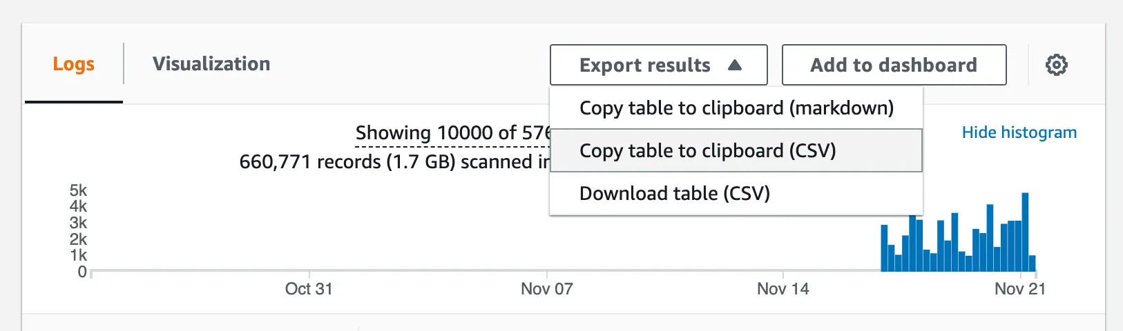 Export results > Copy table to clipboard (CSV)를 클릭합니다