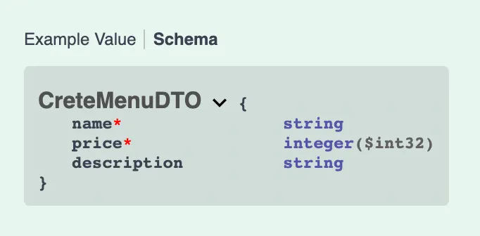 다음과 같은 API에서 CreateMenuDTO의 특정 변수를 optional로 처리하려고 합니다.