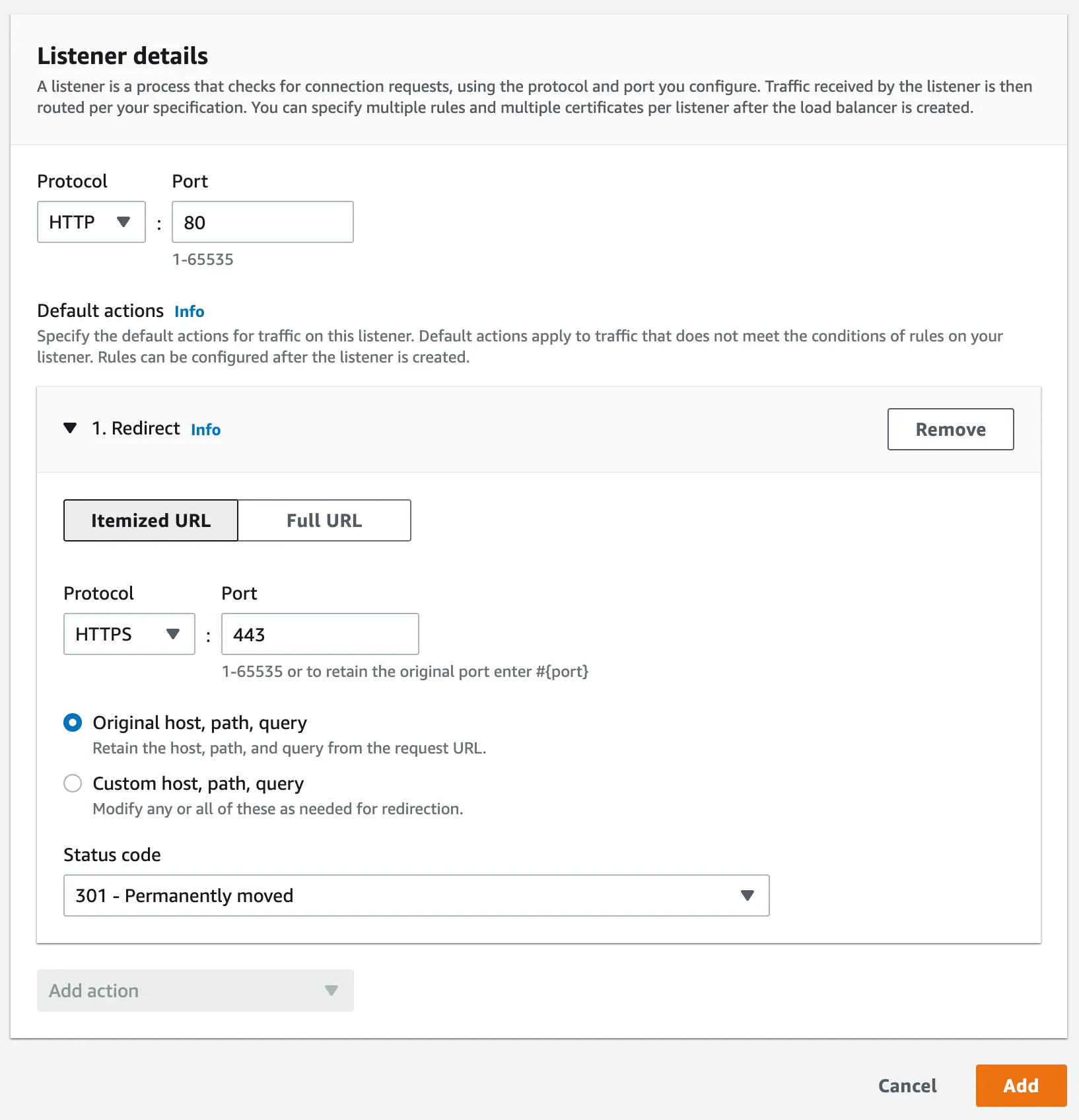 ‘redirect HTTP to HTTPS’ 로 설정하고