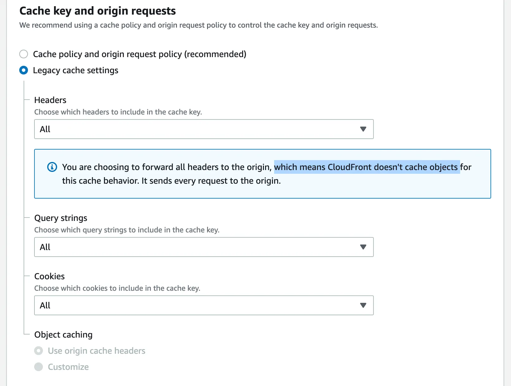 그리고 캐싱정책은 다음과 같이 설정합니다.