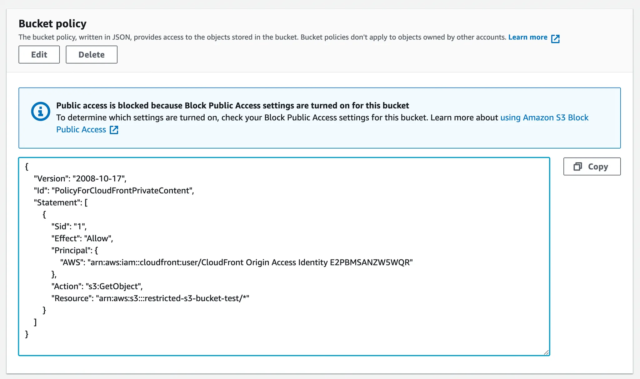 "AWS": "arn:aws:iam::cloudfront:user/CloudFront Origin Access Identity E2PBMSANZW5WQR"