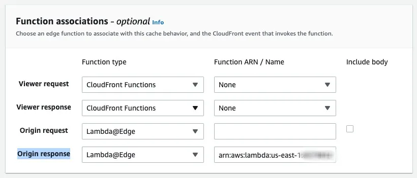 Origin Response를 해당 Lambda@Edge로 설정해줍니다