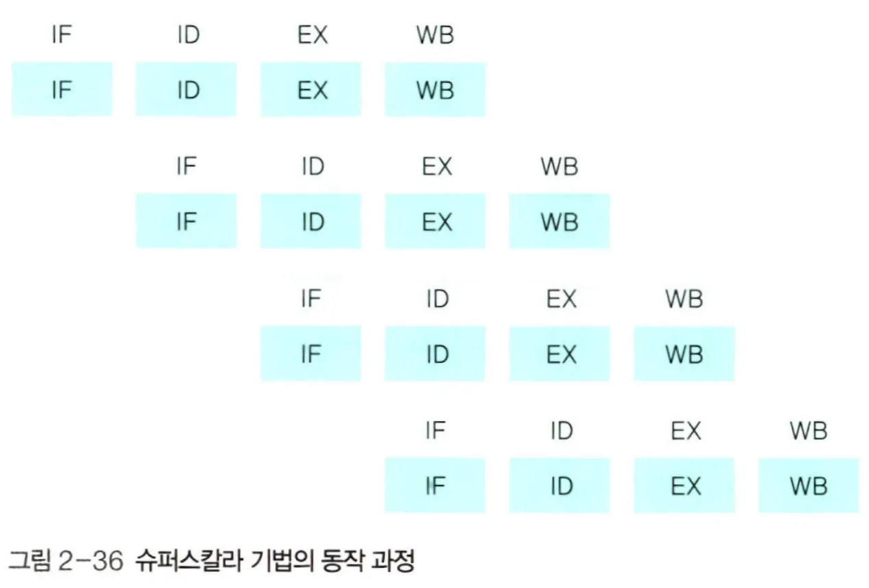 슈퍼스칼라(super-scalar) 기법은 파이프라인을 처리할 수 있는 코어를 여러 개 구성하여 복수의 명령어가 동시에 실행되도록 하는 방식이다.
