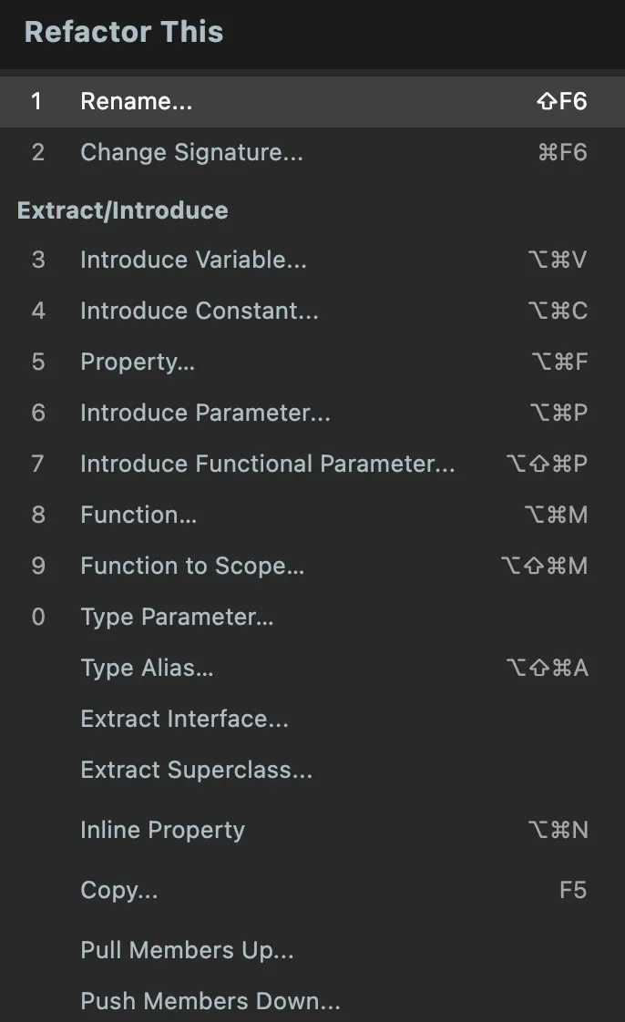 리팩터 목록을 볼 수 있는 단축키입니다.