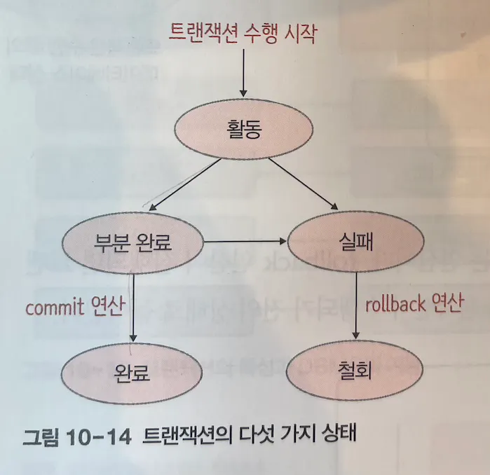 트랜잭션은 다섯 가지 상태 중 하나에 속하게 된다.