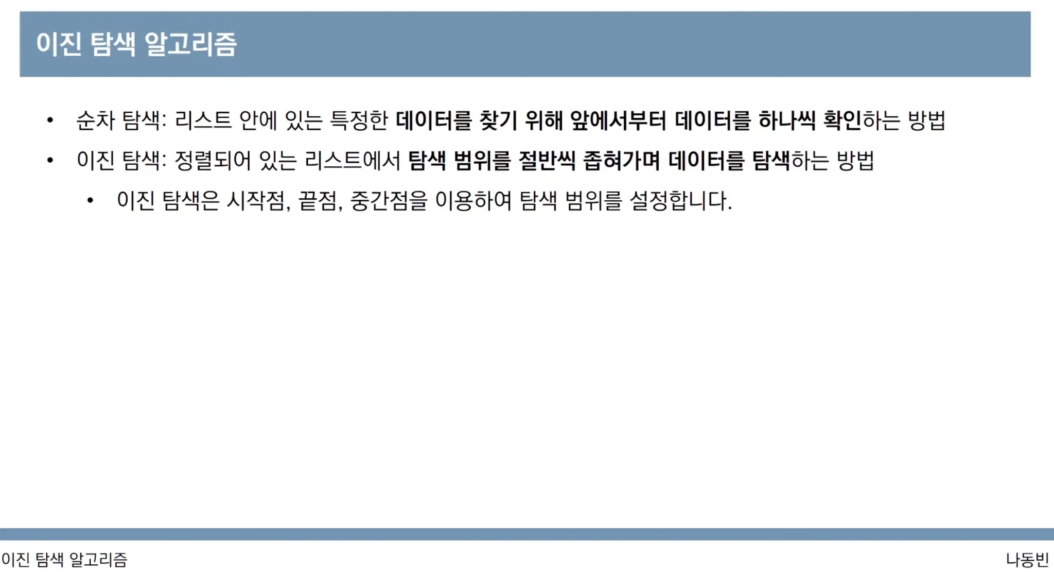 나동빈님의 이진 탐색 유튜브 영상을 참고하였습니다.