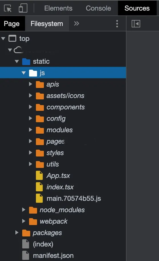 왼쪽은 소스맵 생성이 된 것이고, 오른쪽은 소스맵 생성이 되지 않은 배포 버전입니다.
