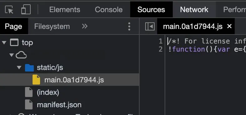 React에서는 디버깅을 위해서 기본값으로 소스맵(source map)을 생성합니다.