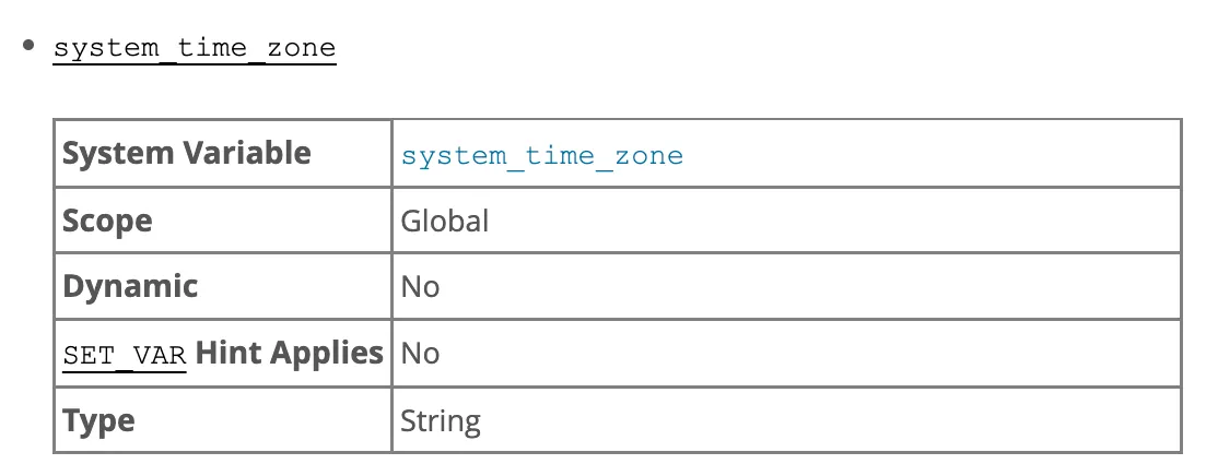 다음 공식문서에서 시스템 변수들을 확인할 수 있습니다.
