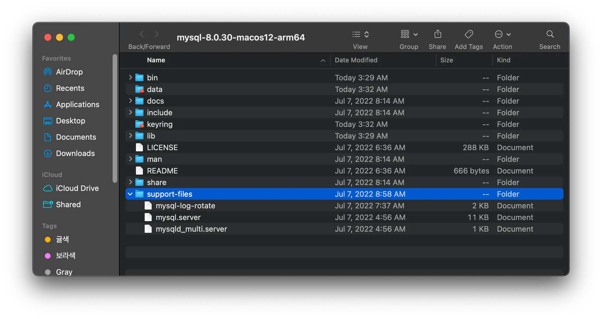 MySQL 서버가 설치된 디렉터리는 /usr/local/mysql이며, 하위의 각 디렉터리 정보는 다음과 같다. 최소한 다음 디렉터리들은 절대 삭제하면 안된다.